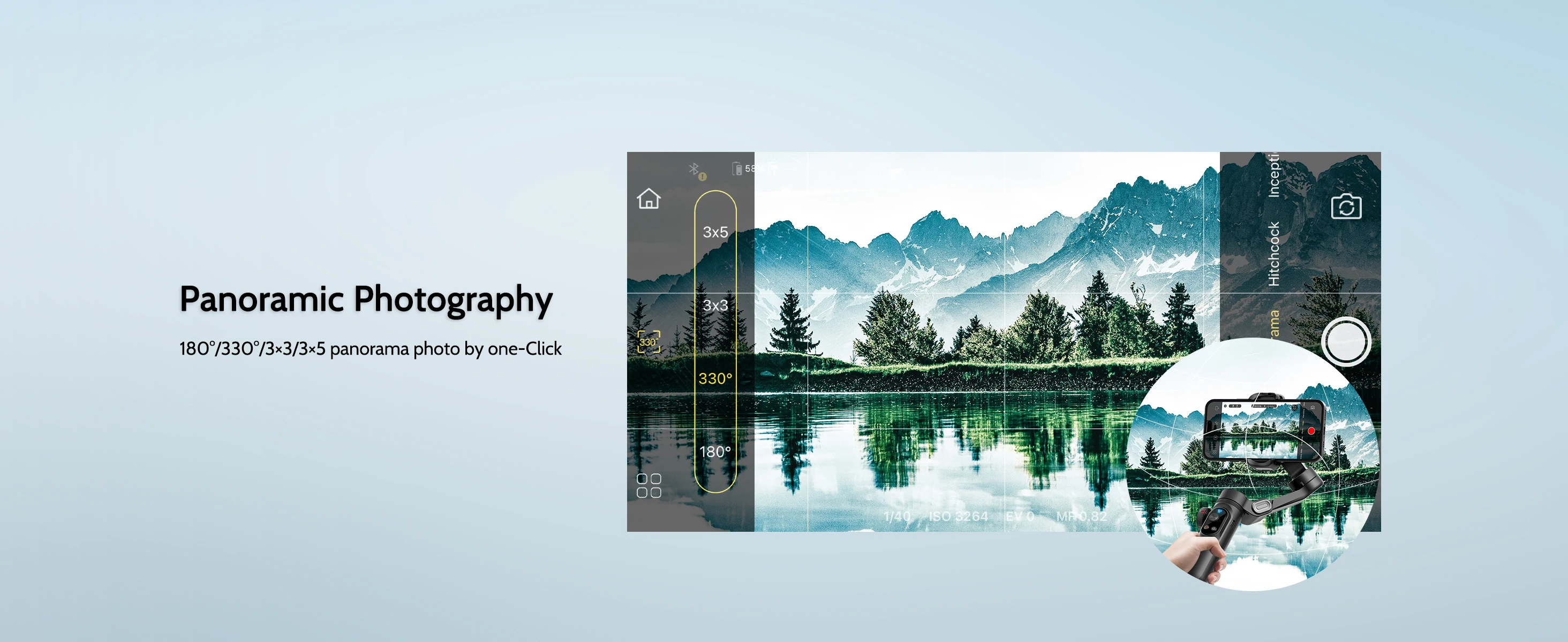 owerful and intuitive AOCHUAN app. Master Smart 4.0 AI gesture control, face tracking, including panorama, wide angle, pro mode, live streaming, time-lapse and motion capture. Multi-functional features such as Initial Mode, Push-Pull Zoom, Time Lapse, and Motion Passage make it easier than ever to record moments. Plus, you can change to the ultra-wide-angle iPhone 13 Pro Max to take wider, 3×5 super panoramic photos.