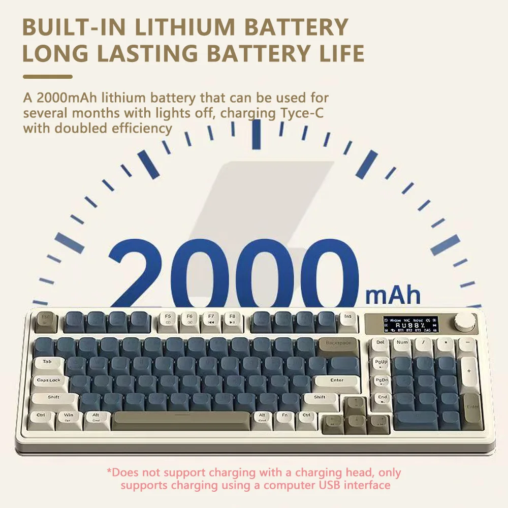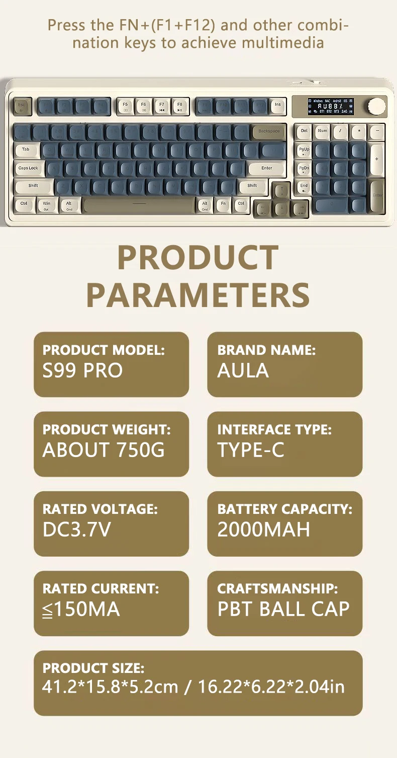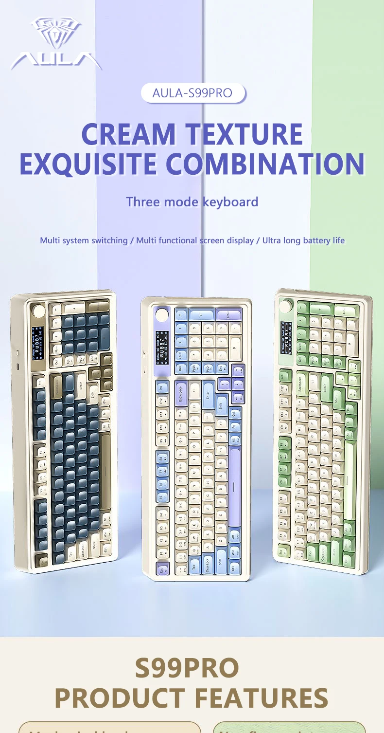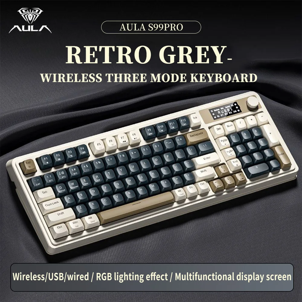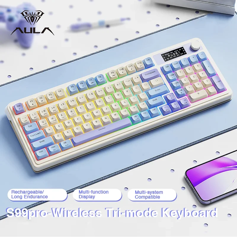 Teclado de membrana para juegos AULA S99 Pro con perilla de pantalla, teclas ABS retroiluminadas RGB, batería de 2000mAh, teclado multimodo para deportes electrónicos