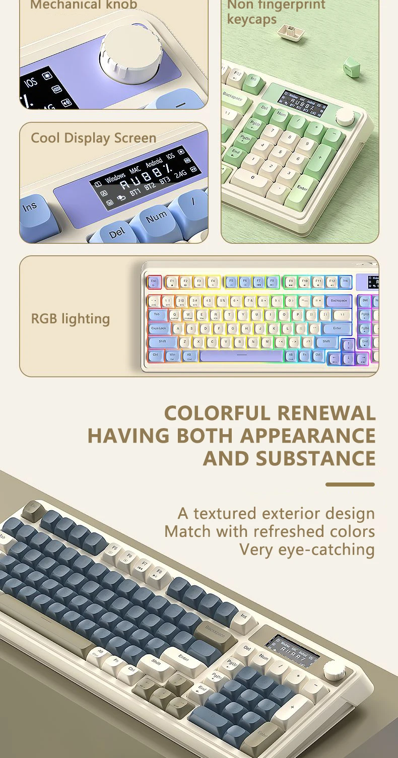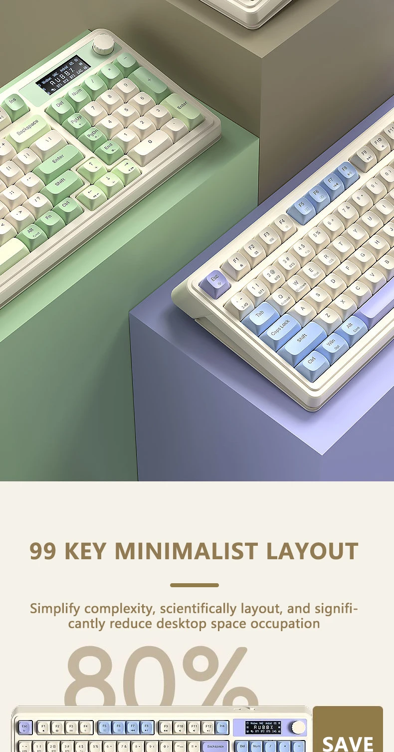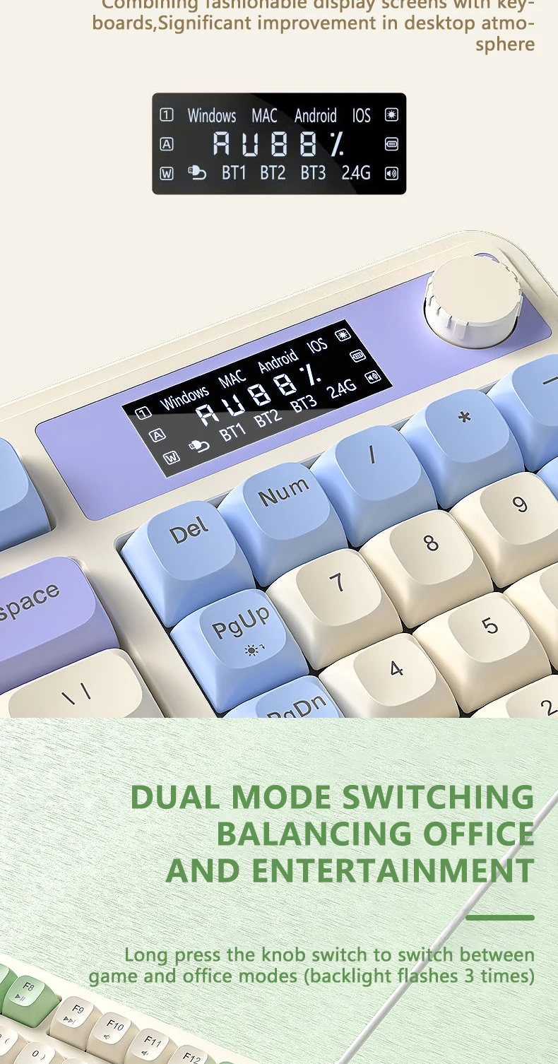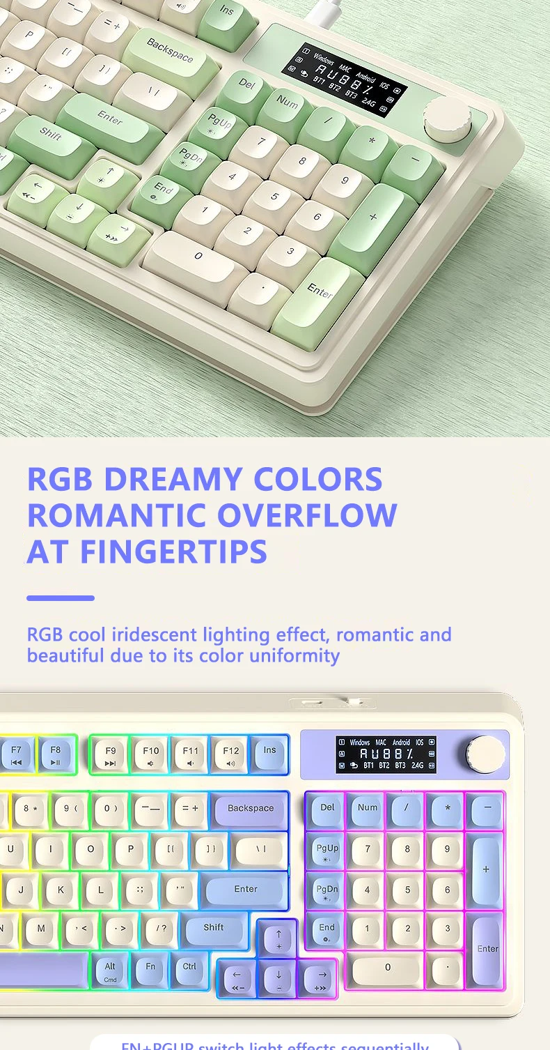 Teclado de membrana para juegos AULA S99 Pro con perilla de pantalla, teclas ABS retroiluminadas RGB, batería de 2000mAh, teclado multimodo para deportes electrónicos