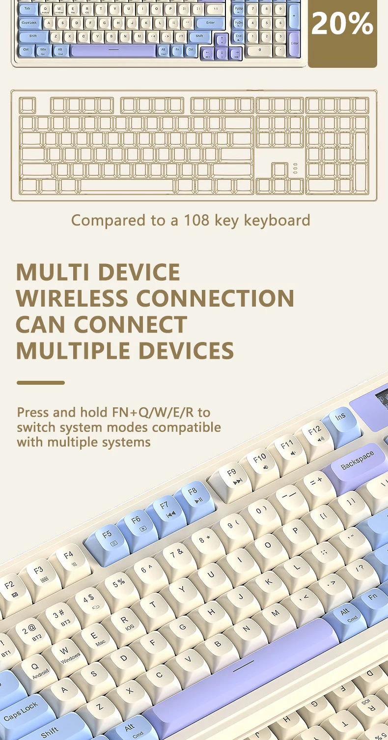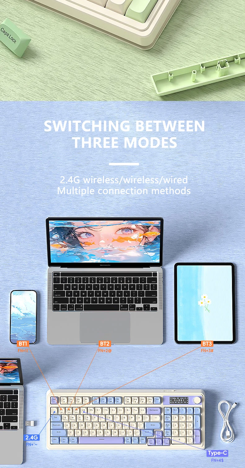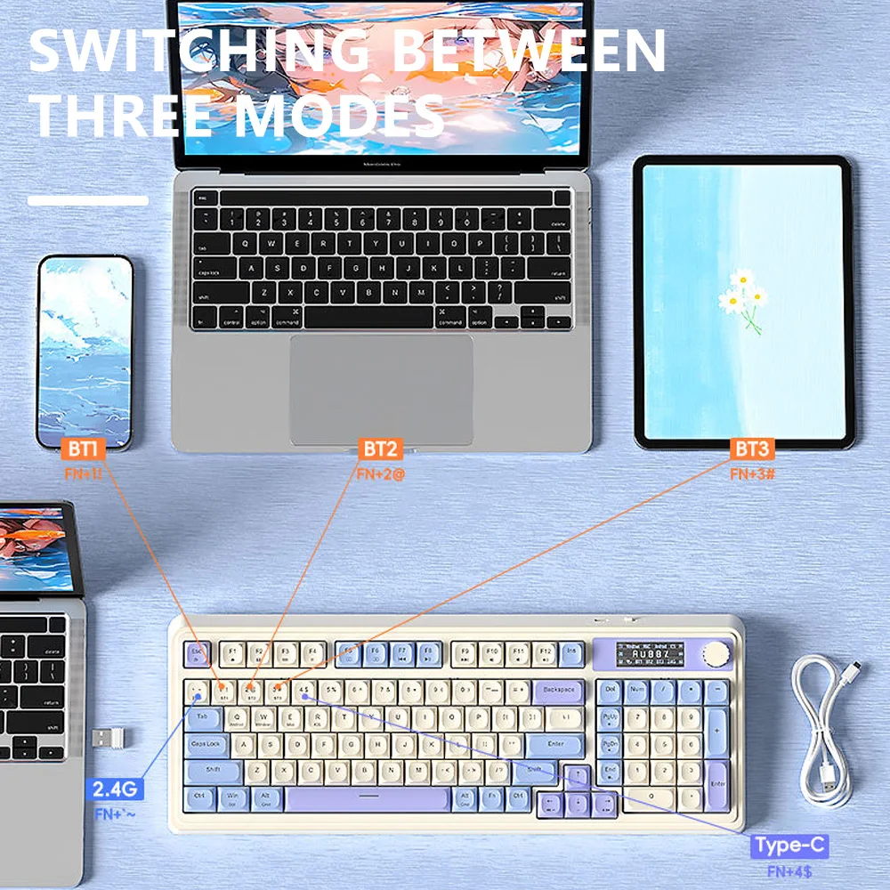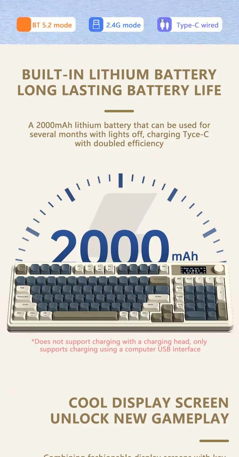 Teclado de membrana para juegos AULA S99 Pro con perilla de pantalla, teclas ABS retroiluminadas RGB, batería de 2000mAh, teclado multimodo para deportes electrónicos