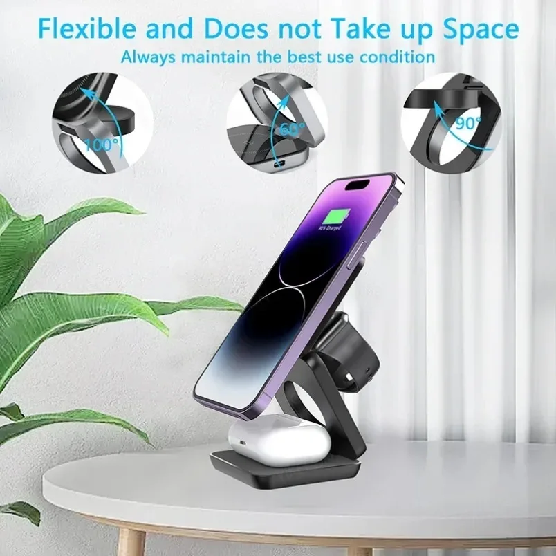 【Imprescindible para viajar: cargador de viaje portátil y plegable】: Este soporte cargador de viaje plegable es un gran complemento para su equipo de viaje, ligero y portátil, fácil de guardar en una bolsa o maleta, que proporciona una experiencia de carga estable durante sus viajes o viajes de negocios. También funciona como soporte para el teléfono, lo que te permite ajustarlo horizontal o verticalmente para ver películas o realizar llamadas FaceTime con facilidad.