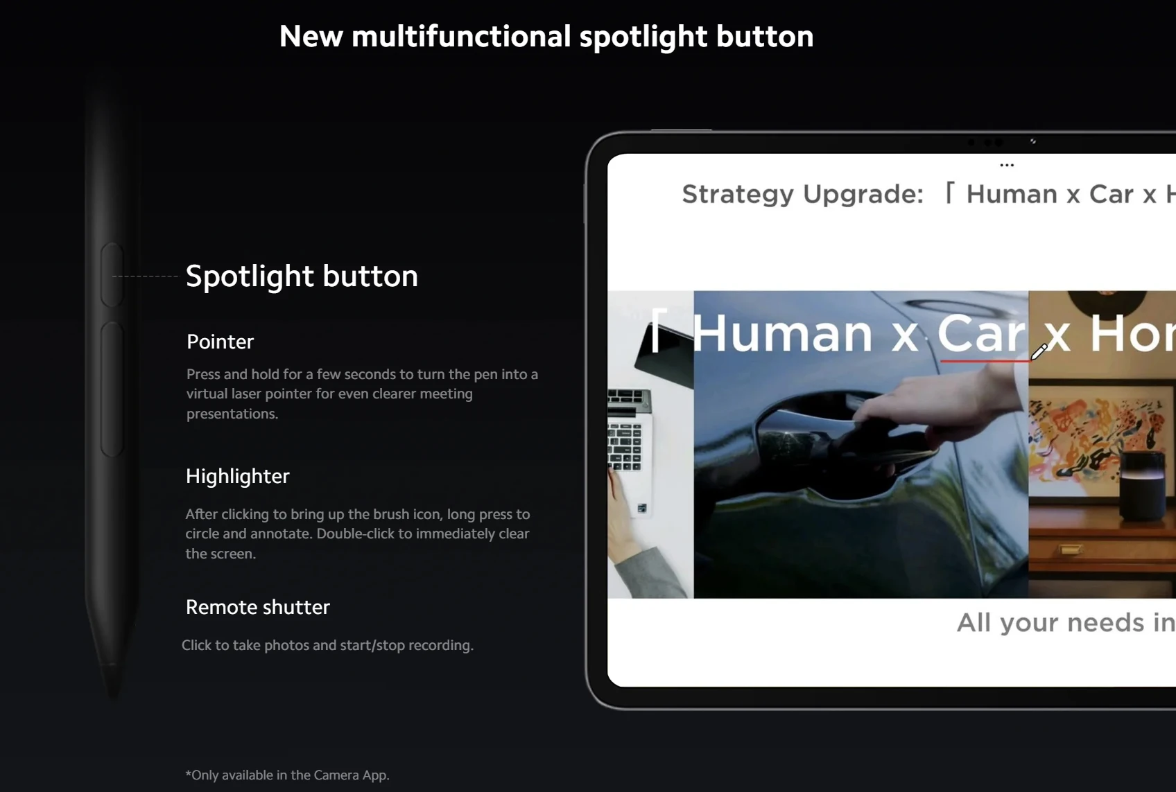 It’s easier to change line thickness with strength and feels more natural, so writing and drawing are handy.New multifunctional spotlight button