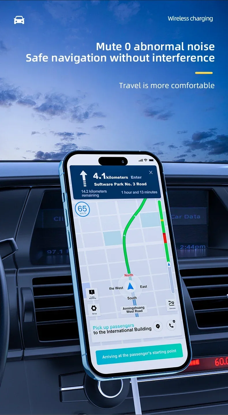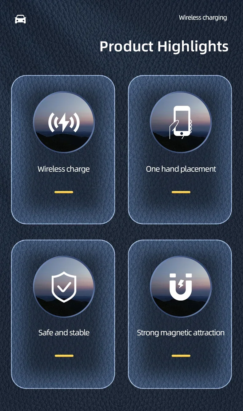 Magnetismo potente: el potente magnetismo fija el teléfono sin que se deslice, lo que permite que su teléfono se concentre completamente en la placa de carga para acelerar la carga.