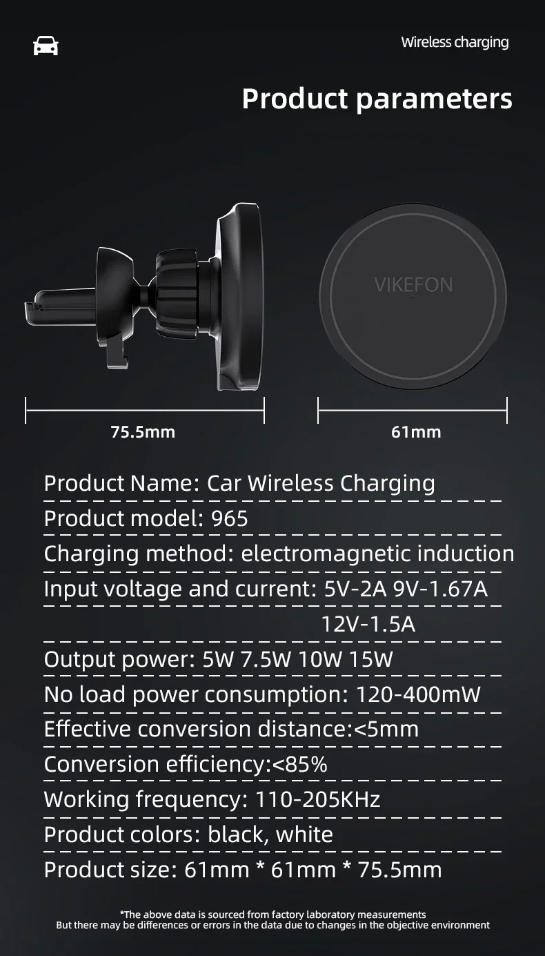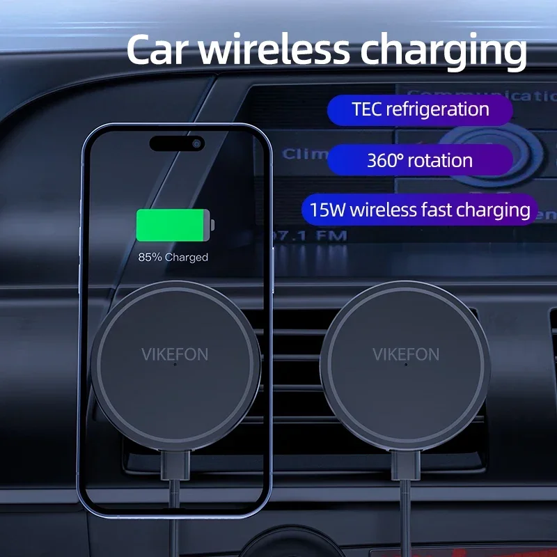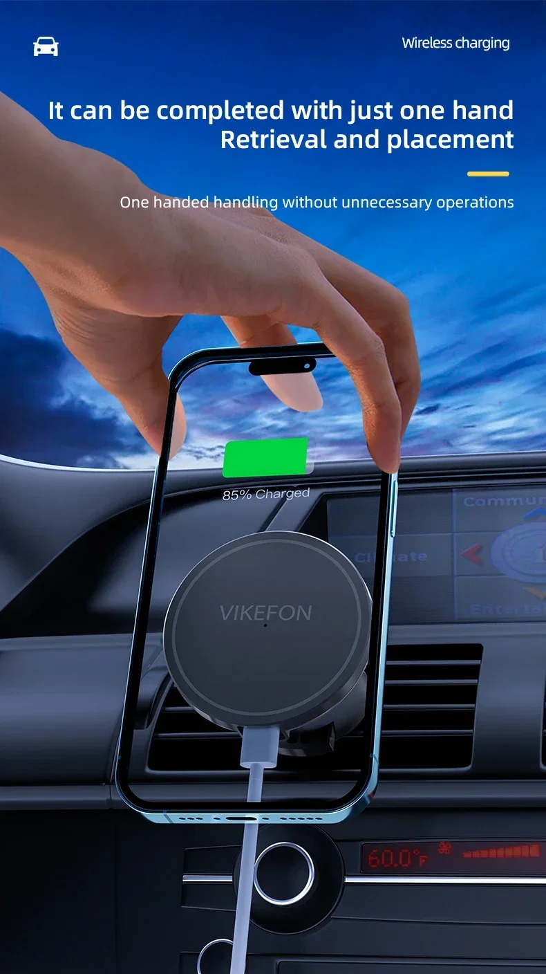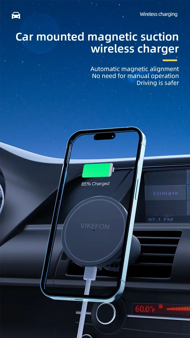 VIKEFON-cargador inalámbrico magnético para coche, soporte de teléfono con anillo para iPhone