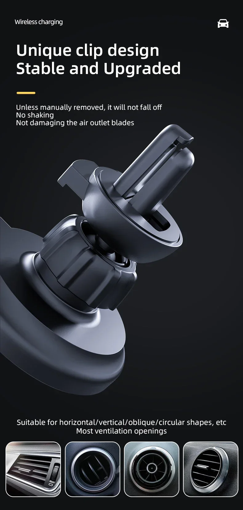 Instalación segura: este soporte para teléfono móvil para coche está equipado con una versión mejorada del clip de ventilación, que puede fijar de forma segura su teléfono inteligente en la rejilla de ventilación del coche.