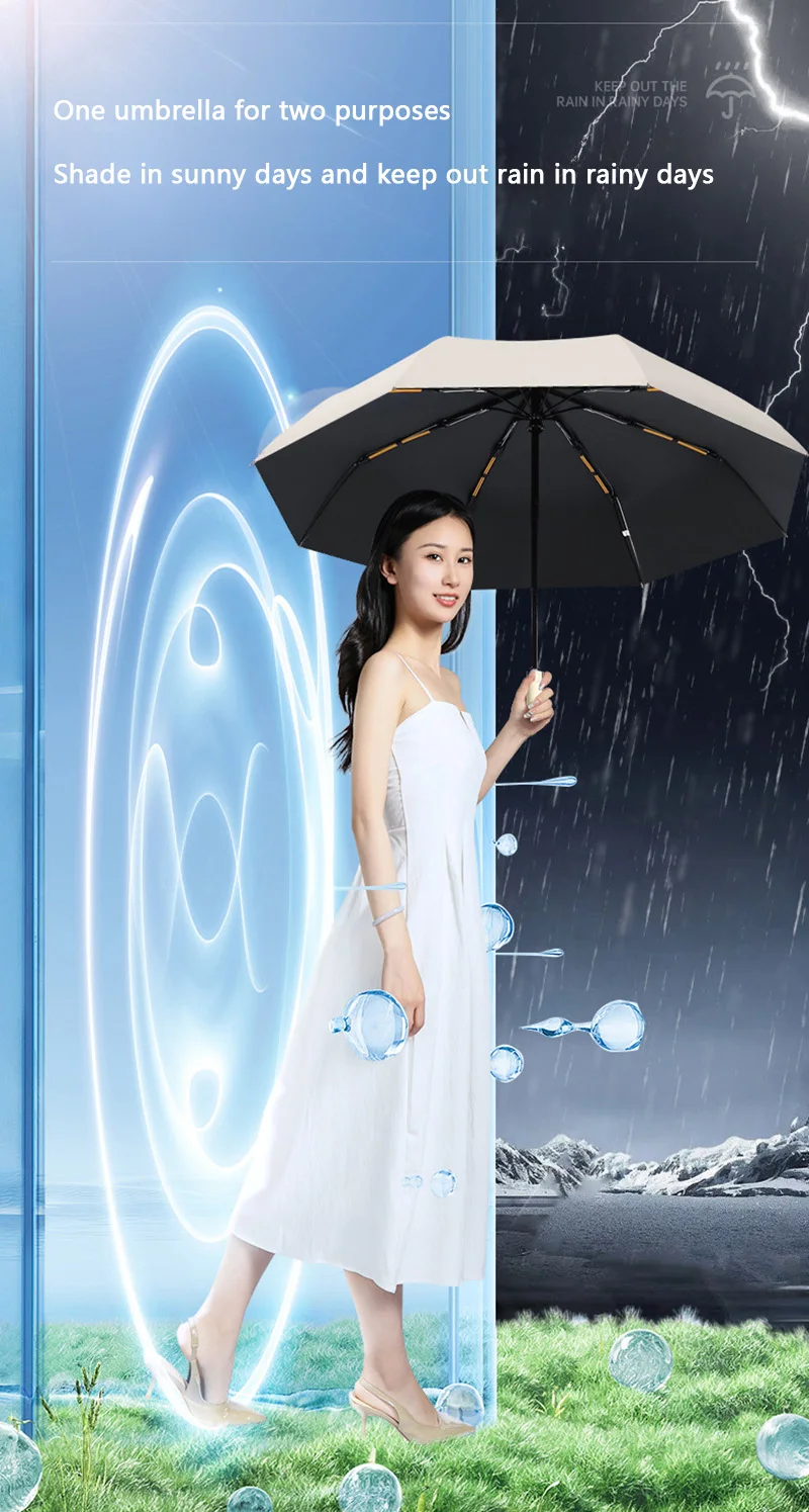 • Control totalmente automático: disfrute de la comodidad de un paraguas totalmente automatizado. Se abre y se cierra con un solo clic, lo que le ahorra tiempo y esfuerzo.